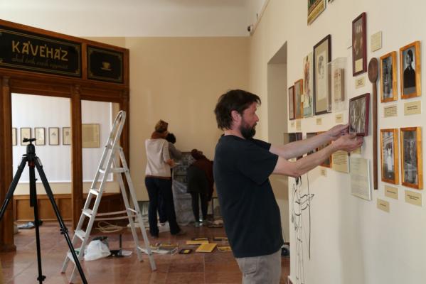 A tárlat falain folyamatosan felbukkan az író különböző grafikákon, e mellett a Tanár úr, kérem! felborult tantermében, az Utazás a koponyám körül vetítőszobájában és egy kávéházban is kalandozhatnak a látogatók, ahol „az írók eszik egymást” tovább